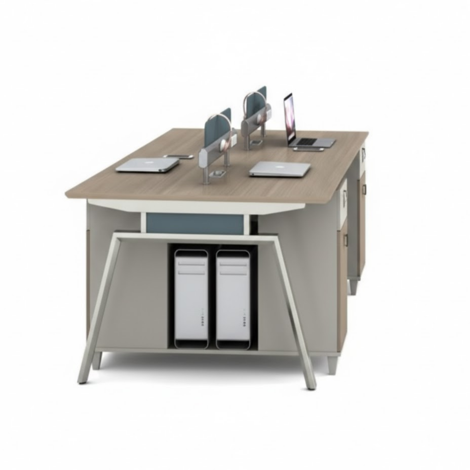 - ✅ Incluye gabinetes laterales con puertas y compartimentos para CPU.