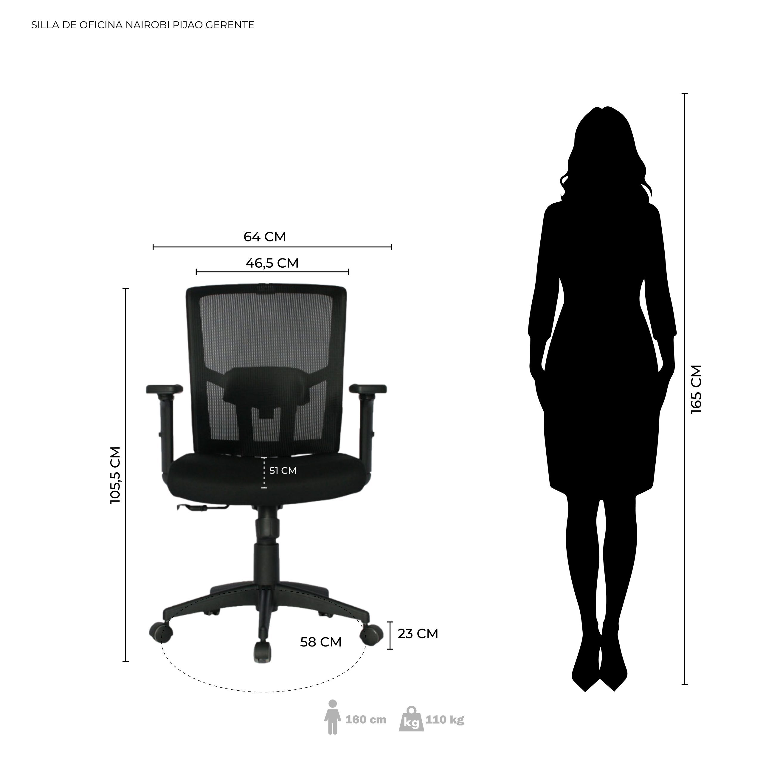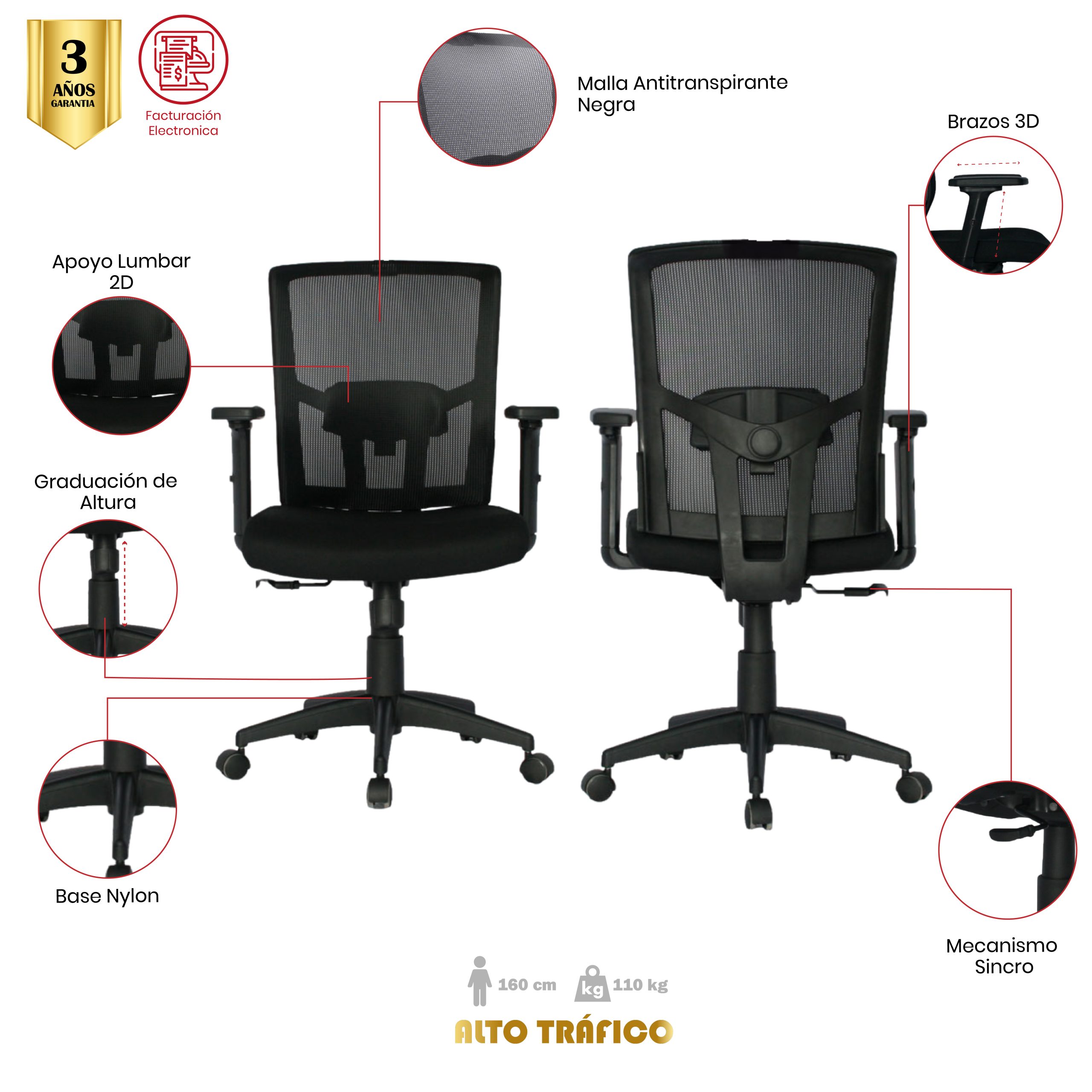 - Respaldo en malla antitranspirante color Negro