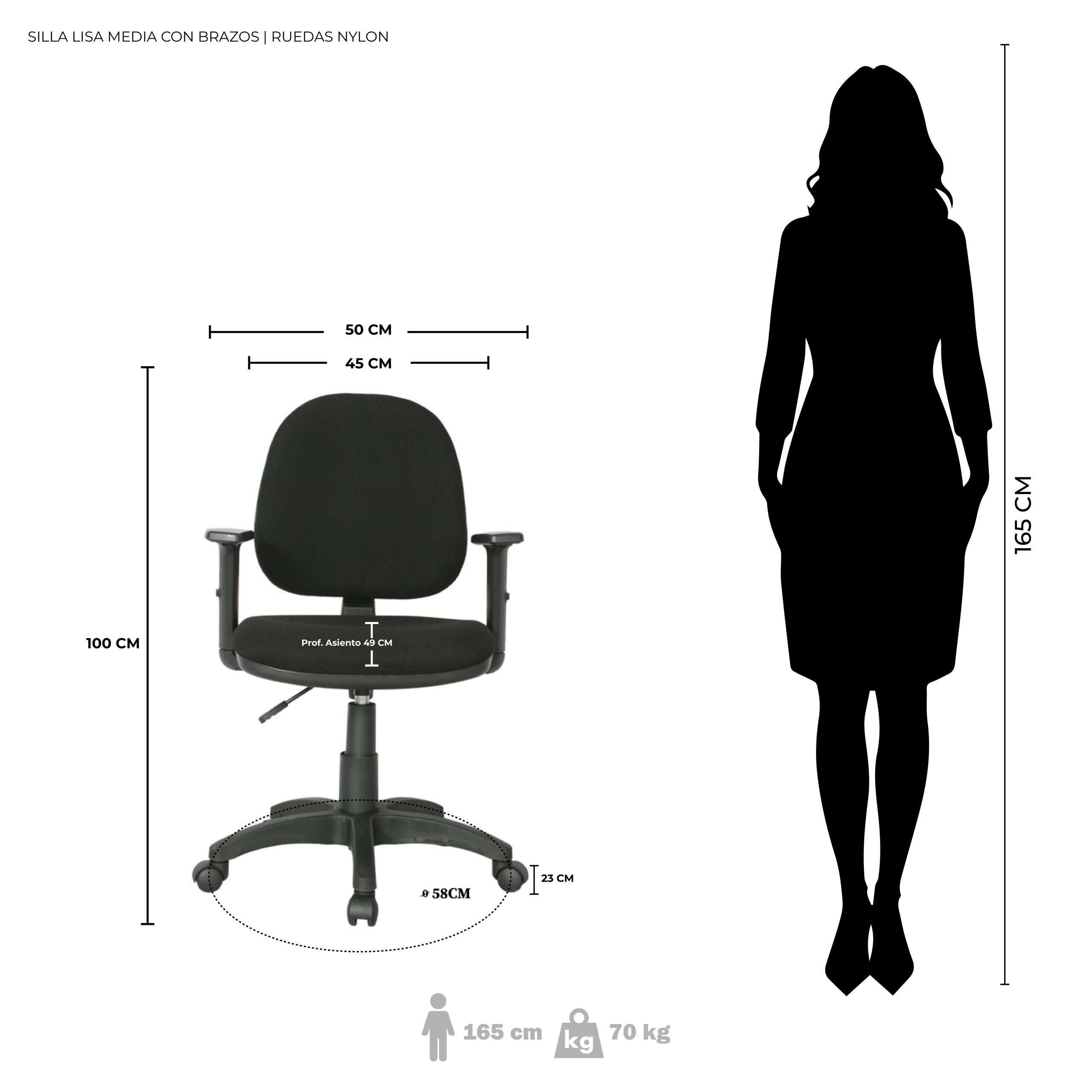SILLA LISA MEDIA CON BRAZOS | RUEDAS NYLON