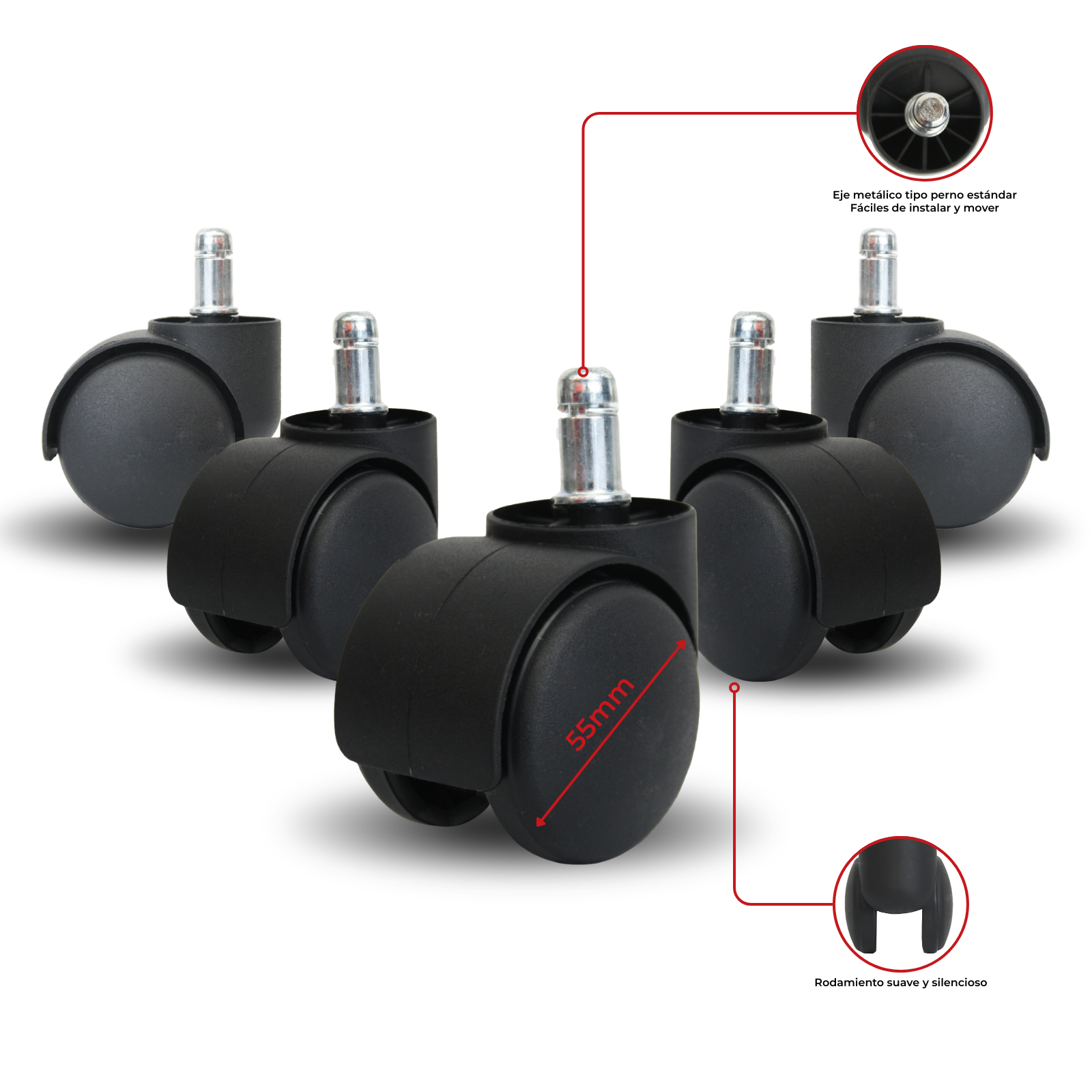 - Rodamiento suave y silencioso, ideal para ambientes corporativos o domésticos